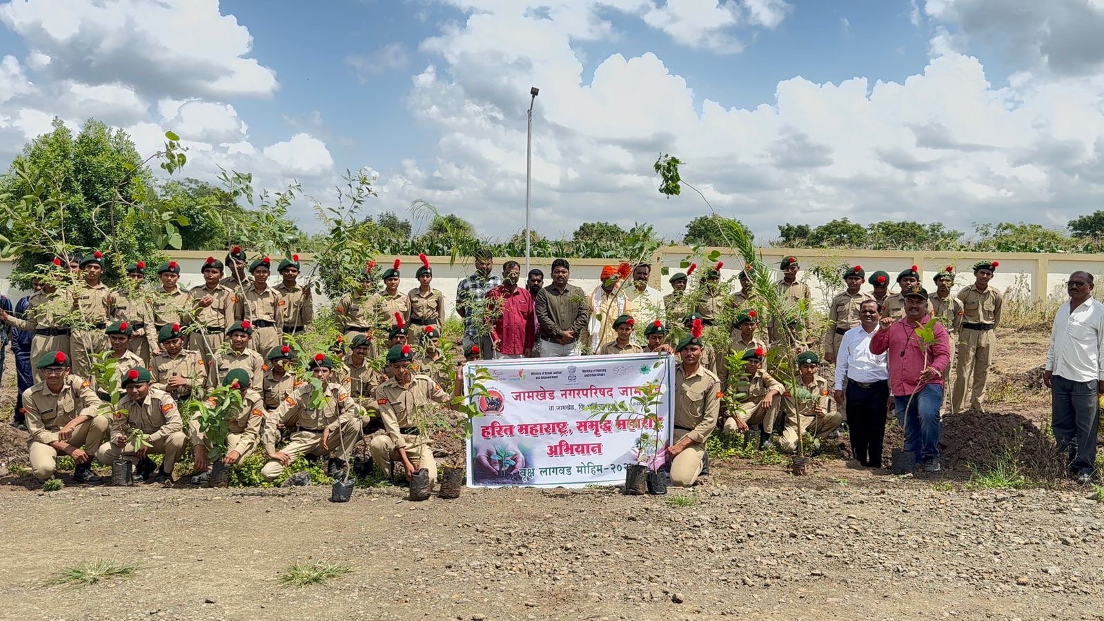 जामखेड नगर परिषद व सतरा महाराष्ट्र बटालियन एनसीसी अहिल्यानगर संयुक्त विद्यमाने हरित महाराष्ट्र समृद्ध महाराष्ट्र व एनसीसी उपक्रम अंतर्गत भव्य वृक्षारोपण जामखेड येथील तपनेश्वर अमरधाम नदी परिसरात करण्यात आले.