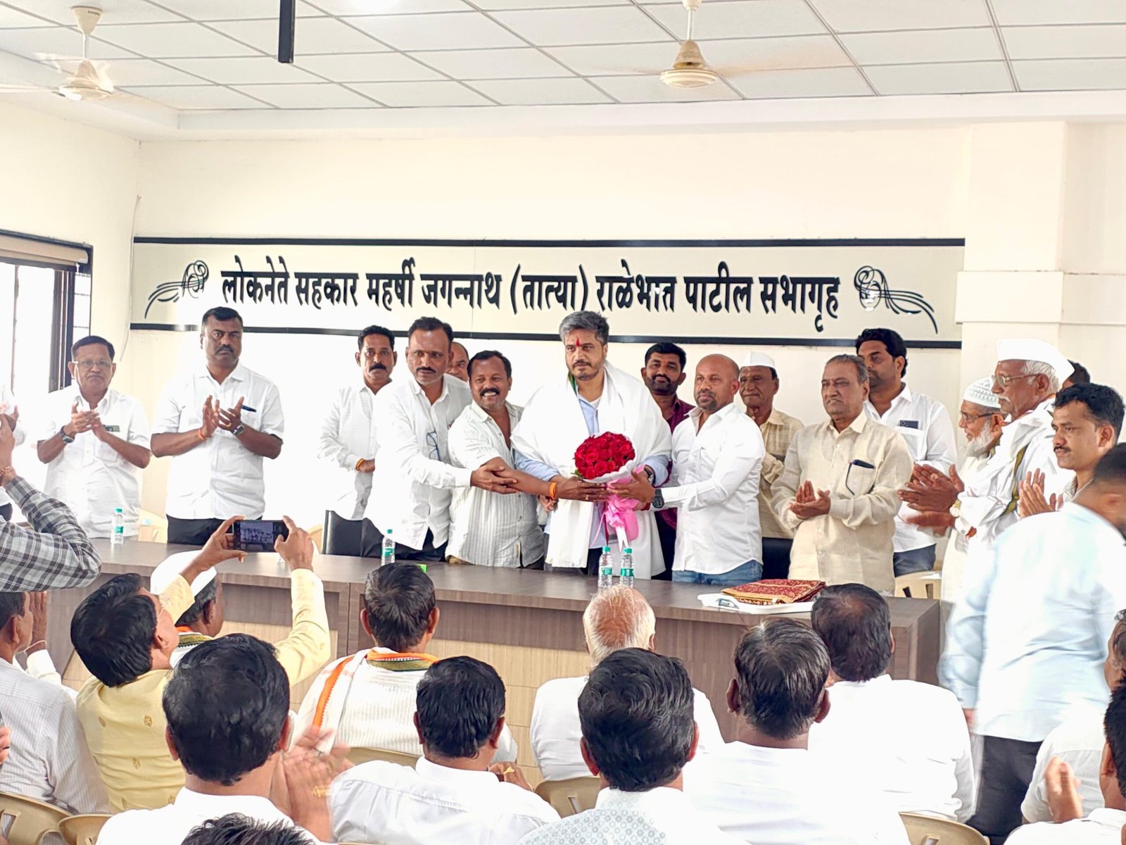 अहिल्यानगर जिल्हा सहकारी बँकेच्या जामखेड येथील लोकनेते जगन्नाथ तात्या राळेभात पाटील सभागृहात कर्जत जामखेडचे लोकप्रिय आ.मा.श्री.रोहित (दादा) पवार साहेब यांची राष्ट्रवादी कॉंग्रेस (श.प.) पक्षाच्या महाराष्ट्र प्रदेश सरचिटणीसपदी व सर्व फ्रंटल व सेलच्या प्रभारीपदी तसेच महाराष्ट्र राज्य कुस्तीगीर परिषदेच्या अध्यक्षपदी निवड झाल्याबद्दल त्यांचा जिल्हा सहकारी बँकेचे संचालक अमोल दादा राळेभात व मार्केट कमिटीचे मा.सभापती व विद्यमान संचालक सुधीर दादा राळेभात यांच्या वतीने सत्कार करण्यात आला.