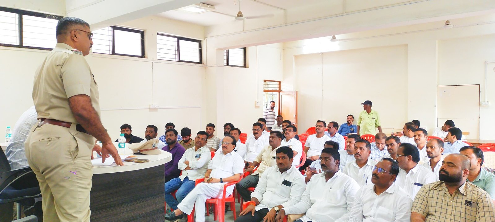 श्री नागेश्वर यात्रा व नागपंचमी उत्सवाच्या पार्श्वभूमीवर जामखेड तहसील कार्यालयात आज दुपारी १२.१० वाजता शांतता कमिटी बैठक पार पडली.या बैठकीच्या अध्यक्षस्थानी तहसीलदार गणेश माळी तर जामखेड नगरपरिषदेचे मुख्याधिकारी अजय साळवे, पोलीस निरीक्षक दशरथ चौधरी, महावितरण चे प्रदीप कटकधोंड, सहाय्यक अभियंता प्रशांत शिंदे,उच्चस्तर लिपिक गणेश केदार यांच्यासह विविध प्रशासकीय अधिकारी तसेच यावेळी शांतता कमिटीच्या बैठकीसाठी जेष्ठ नेते मधुकर राळेभात, माजी सभापती डॉ.भगवान मुरूमकर,प्राचार्य विकी घायतडक,बाजार समितीचे सभापती पै.शरद कार्ले, राष्ट्रवादीच्या युवती प्रदेशाध्यक्षा संध्या सोनवणे,प्रदीप टापरे,अजय काशिद, नय्युमभाई सुभेदार, आतिश पारवे,बाजार समितीचे सचिव वाहेद सय्यद,संचालक राहुल बेदमुथ्था,मंगेश आजबे, उद्योजक आकाश बाफना,अवधूत पवार, विनायक राऊत,राजेश मोरे,नगरसेवक मोहन पवार, दिगांबर चव्हाण,अमित जाधव ,पवन राळेभात,शामीर सय्यद, पांडुरंग भोसले,कुंडल राळेभात,संजय कोठारी ,विकी सदाफुले,उमर कुरेशी,संपत राळेभात,तात्याराम पोकळे,जमीर सय्यद,वसीम सय्यद,प्रशांत राळेभात,प्रविण उगले,अभिजीत राळेभात,भरत जगदाळे,सुनील जगताप,गणेश माने, संजय डोके,बाबा चंदन, विशाल अब्दुले,सचिन शिंदे,ऋषिकेश खरात,किशोर कांबळे आदी मान्यवर व ग्रामस्थ मोठ्या संख्येने उपस्थित होते.